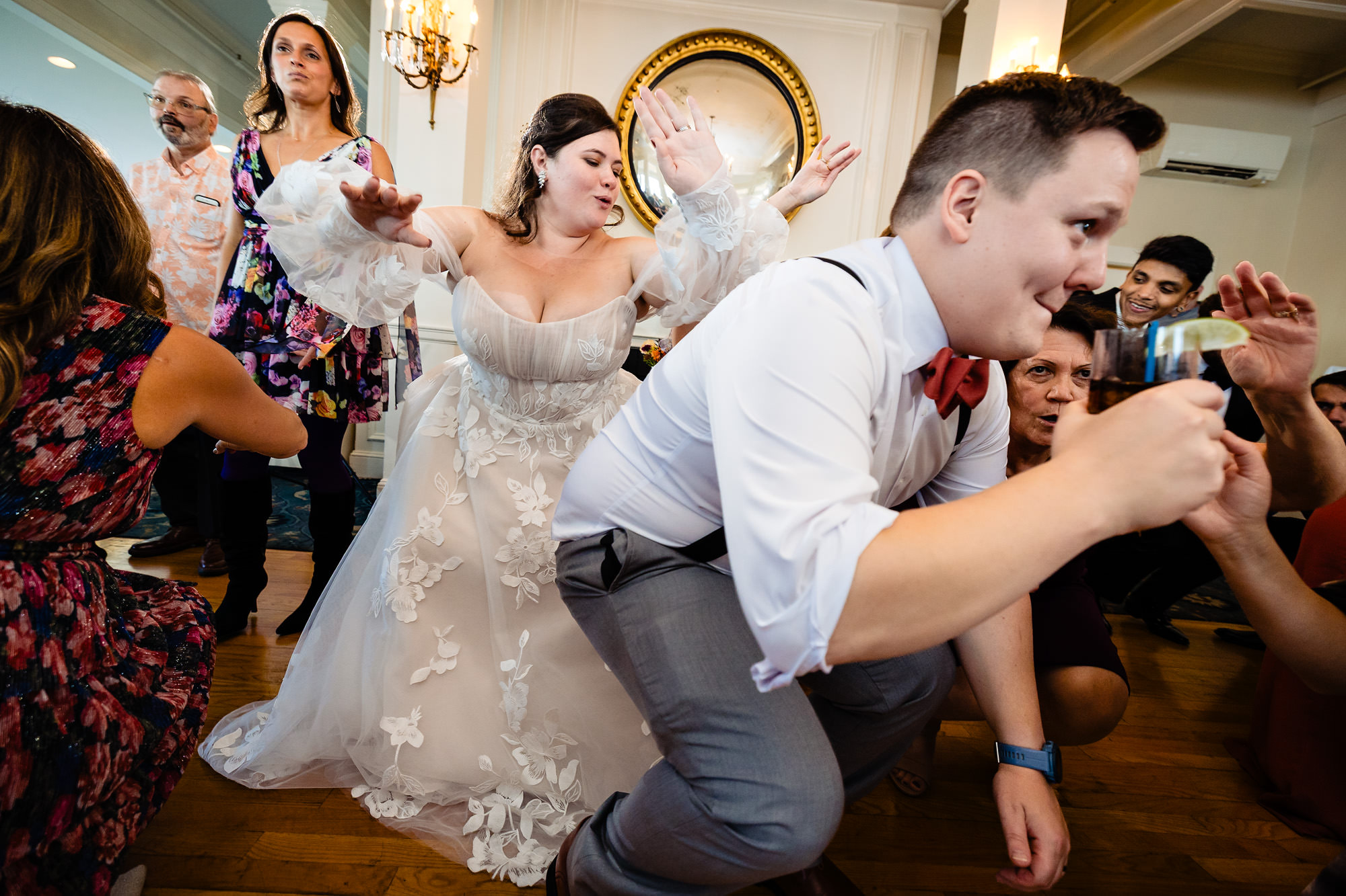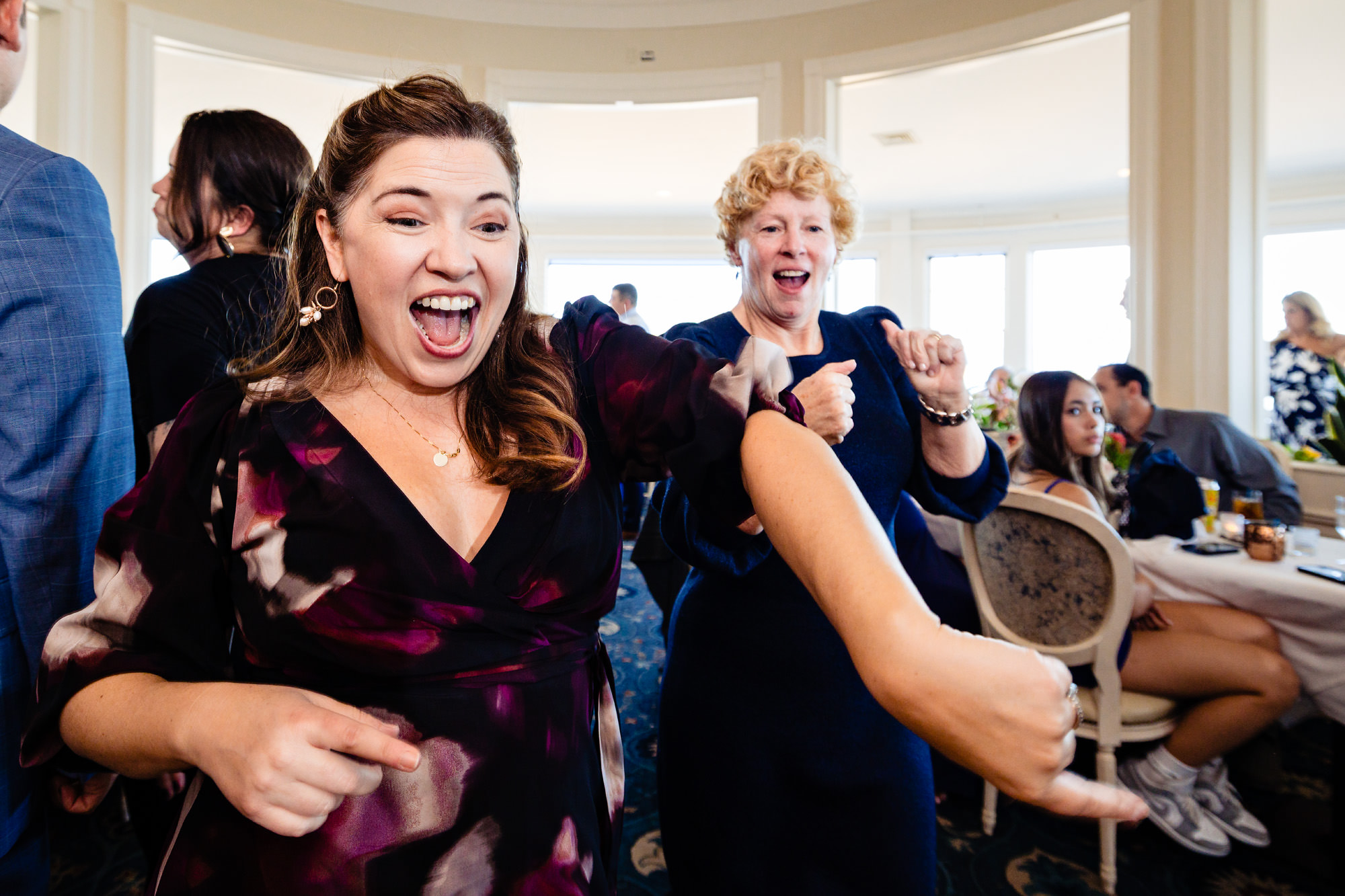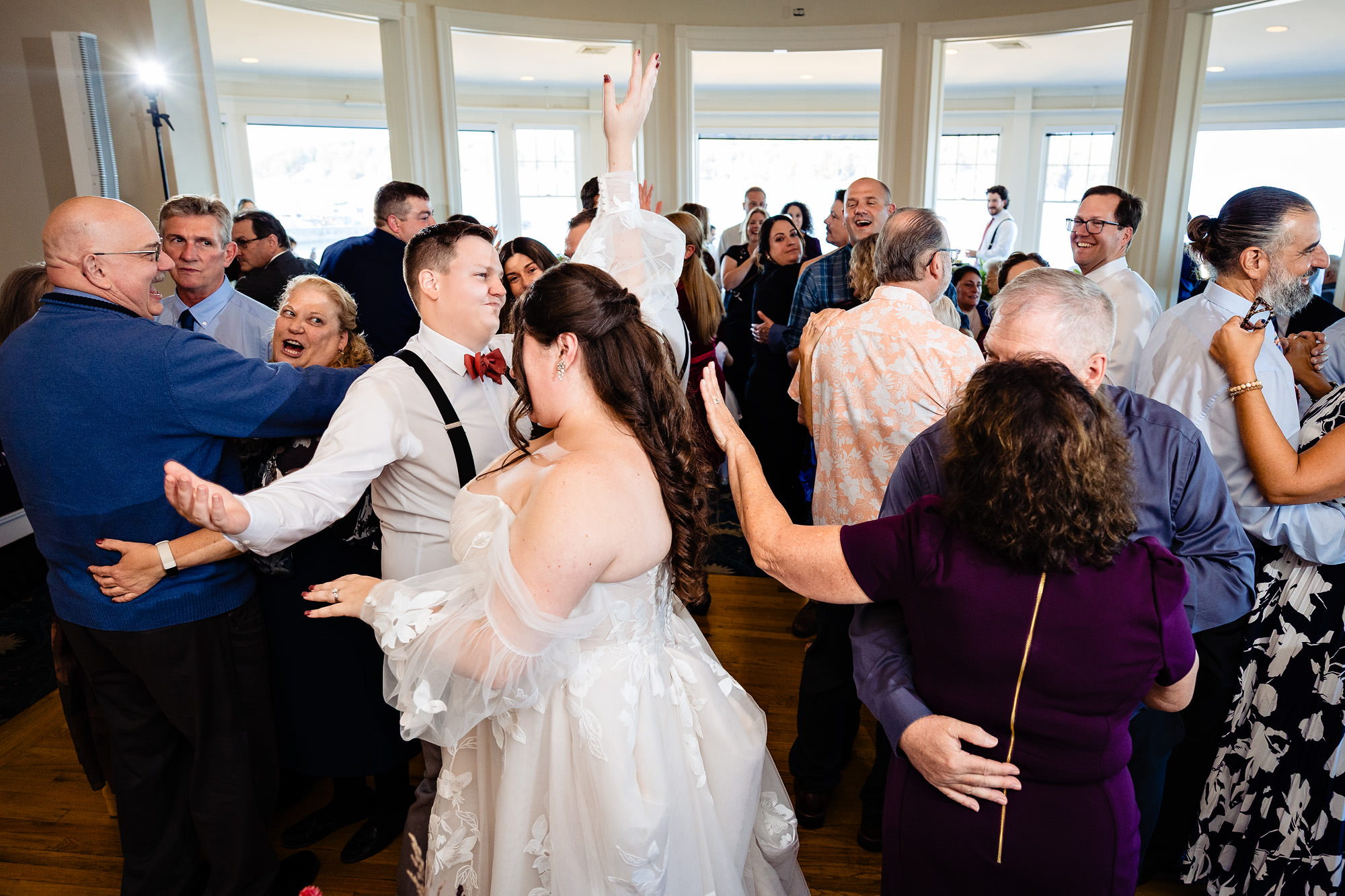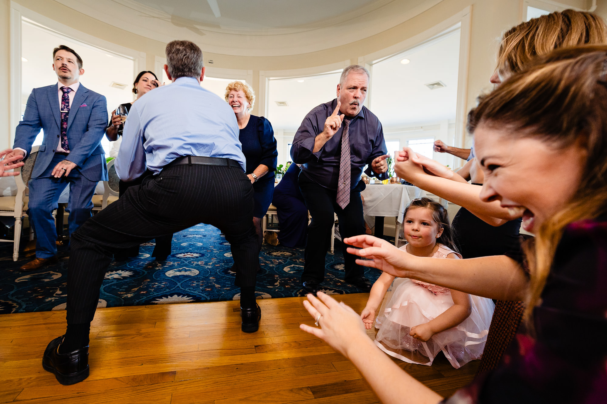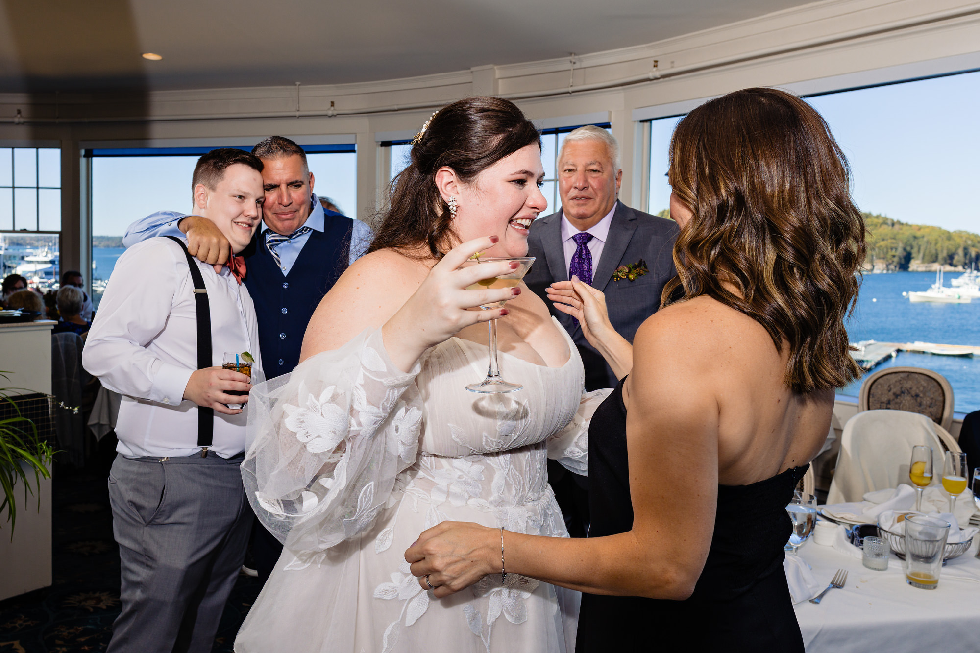 Guests filtered inside Bar Harbor Inn’s Reading Room for cocktail hour, and once Amanda was bustled, we joined the festivities. We started with the usual reception events- first dance, parent dances, and tearjerker toasts, and I felt so much joy capturing their day. Since Amanda and Matt’s ceremony was at 11:30, I wondered- would their guests dance? I wasn’t sure- you never know how active a dance floor will be for an afternoon wedding reception. But I should have known, what with Danny DeBruin’s DJing skills, that the dance floor would be off the charts with energy, and I had plenty of awesome dance moves to capture.
