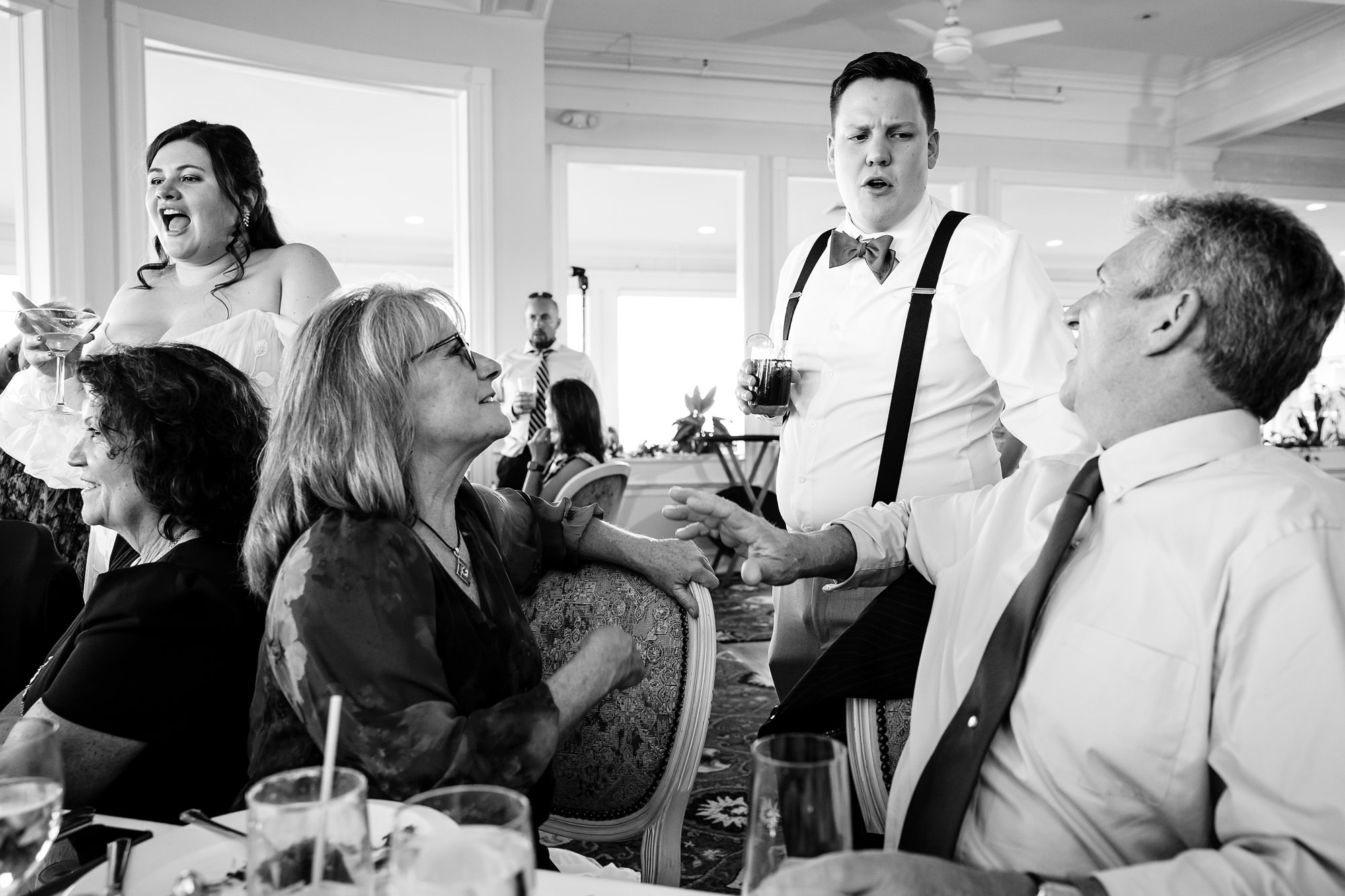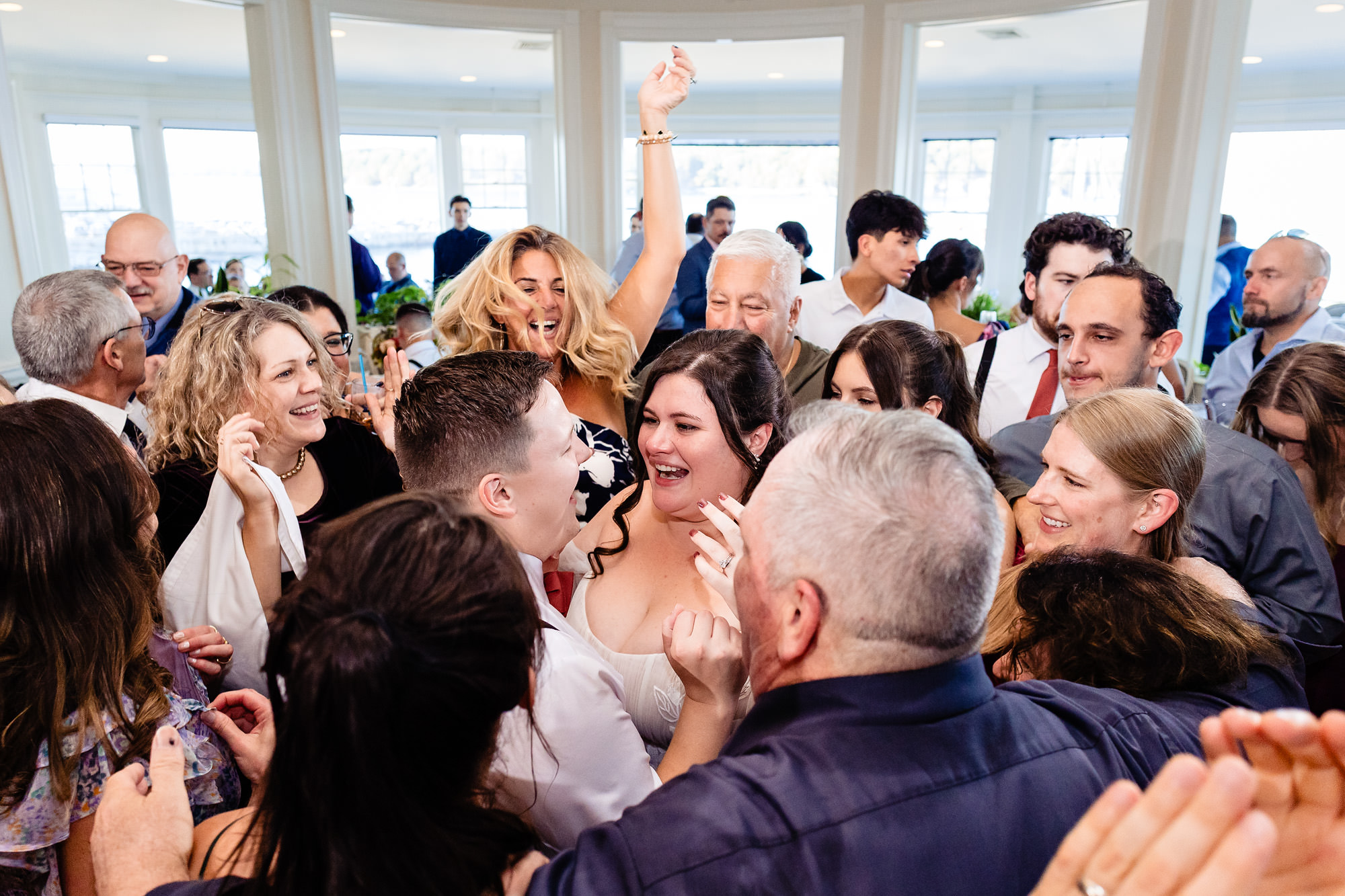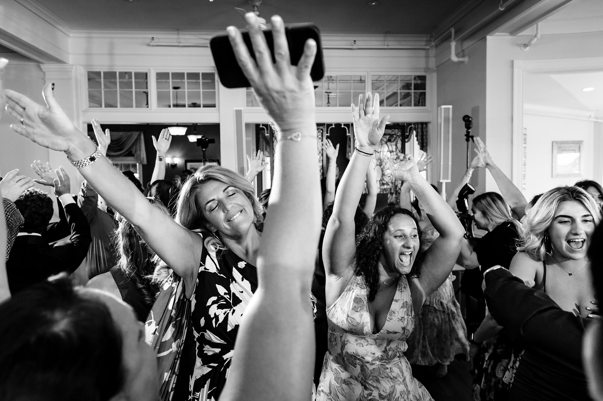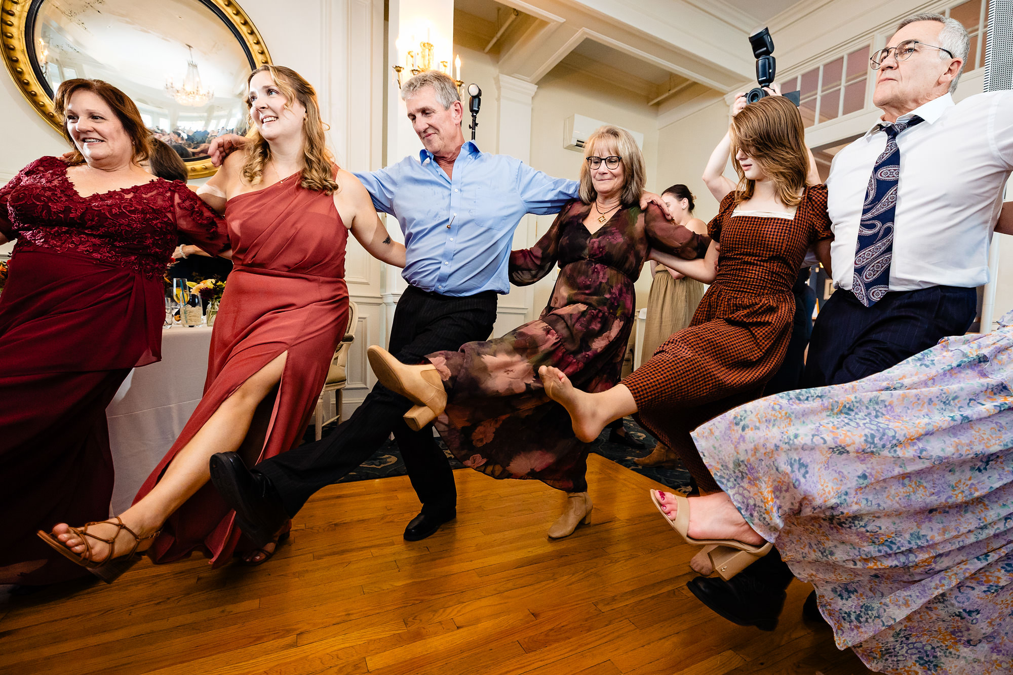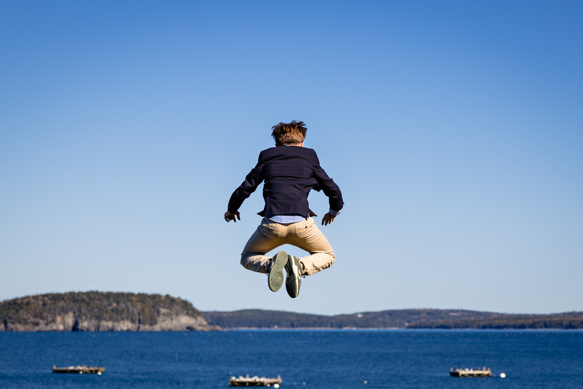 Guests filtered inside Bar Harbor Inn’s Reading Room for cocktail hour, and once Amanda was bustled, we joined the festivities. We started with the usual reception events- first dance, parent dances, and tearjerker toasts, and I felt so much joy capturing their day. Since Amanda and Matt’s ceremony was at 11:30, I wondered- would their guests dance? I wasn’t sure- you never know how active a dance floor will be for an afternoon wedding reception. But I should have known, what with Danny DeBruin’s DJing skills, that the dance floor would be off the charts with energy, and I had plenty of awesome dance moves to capture.
