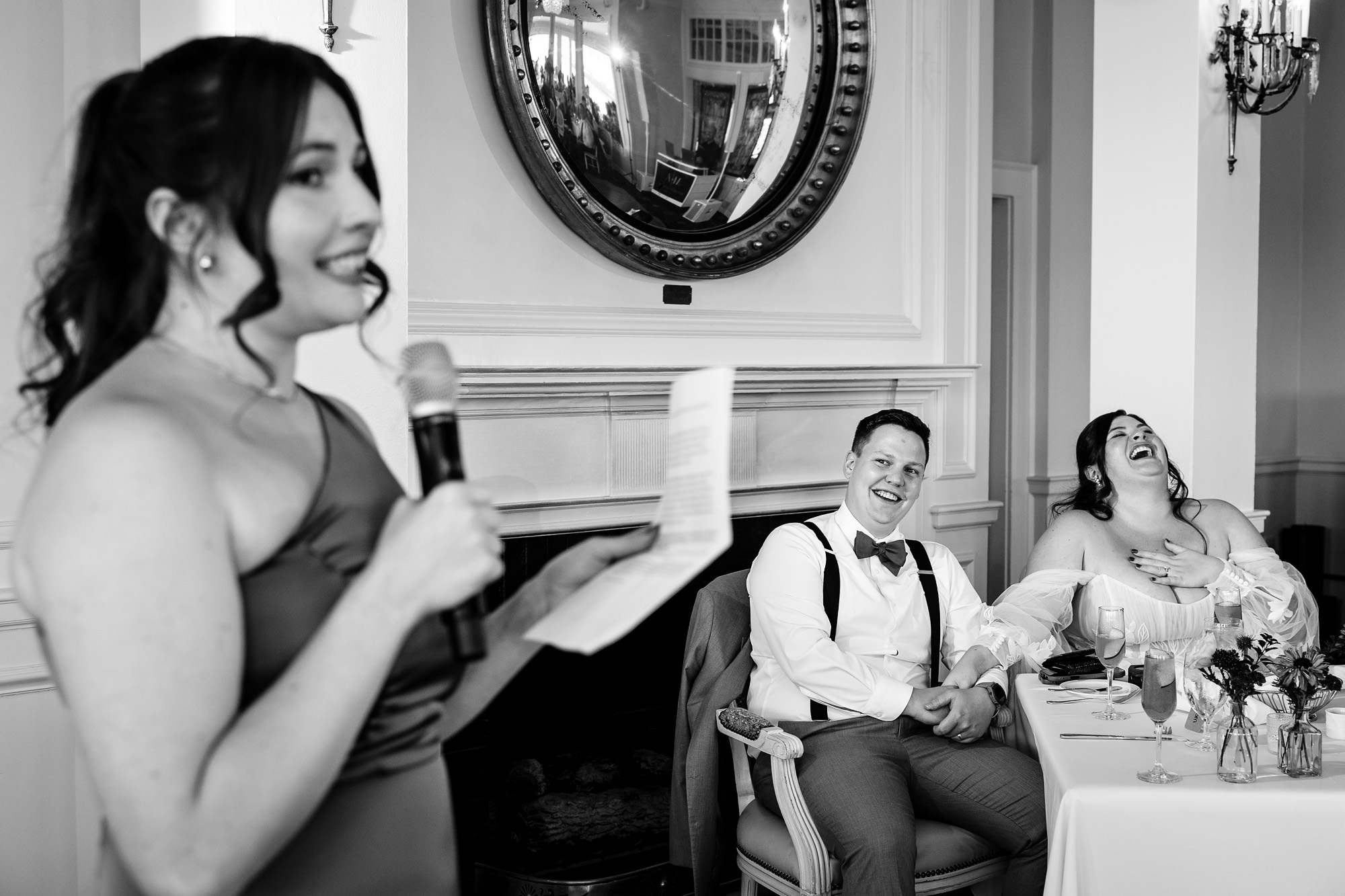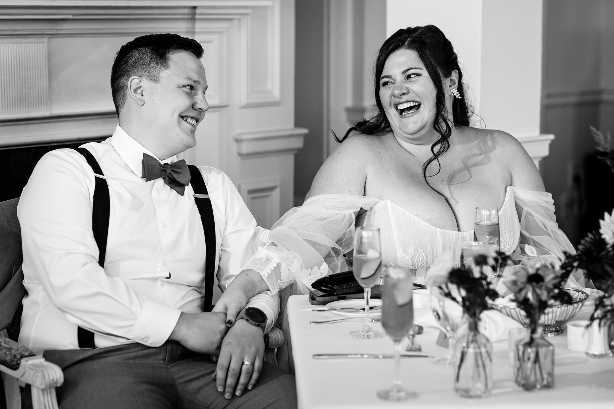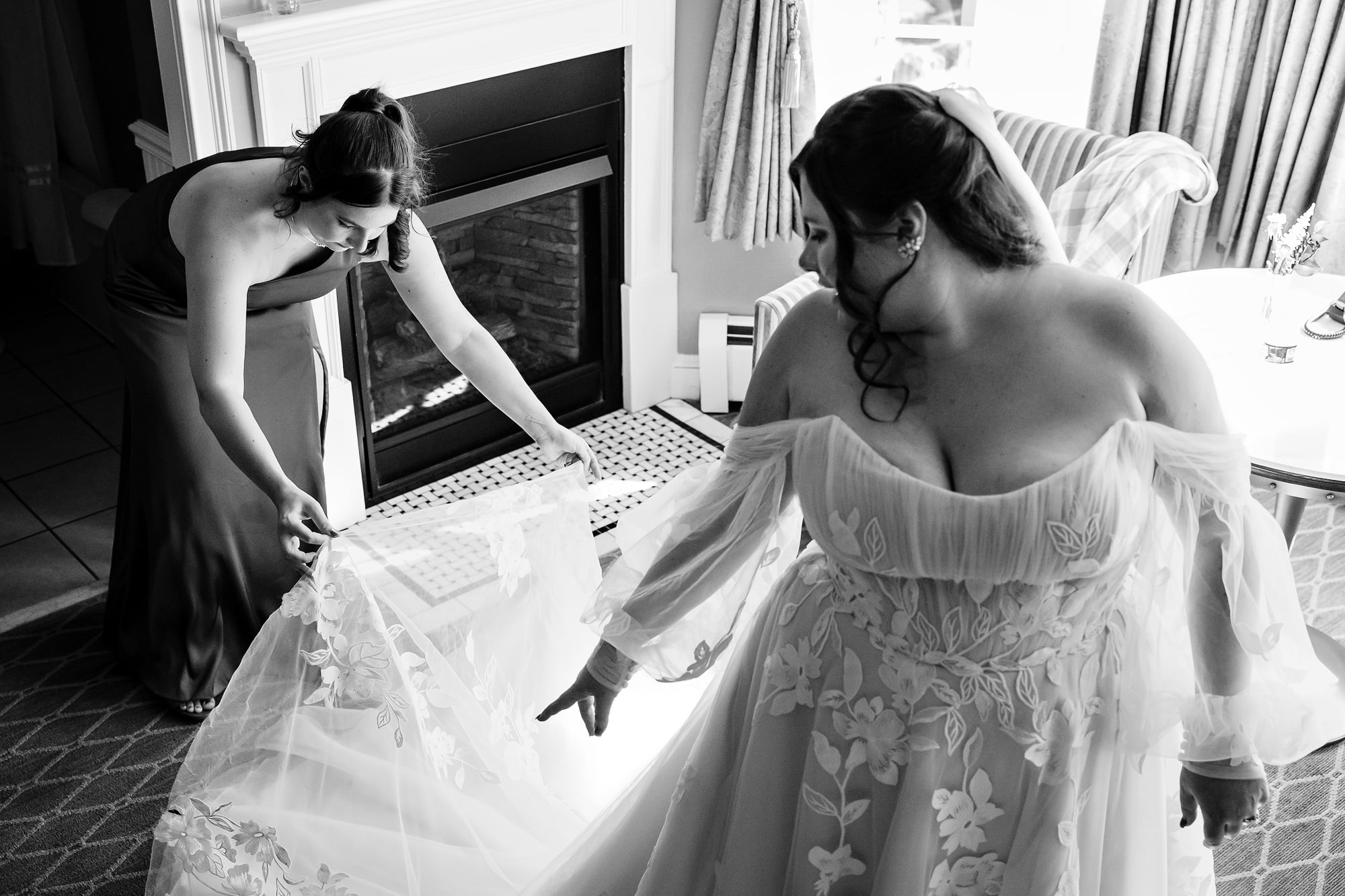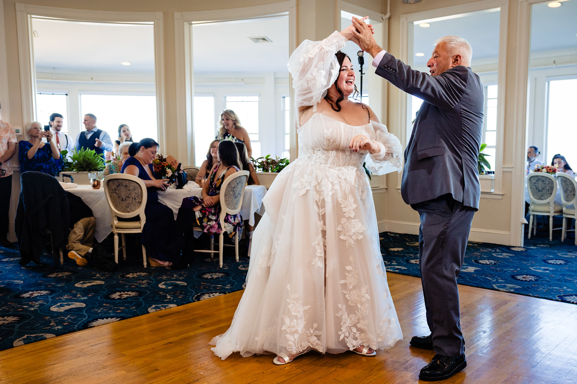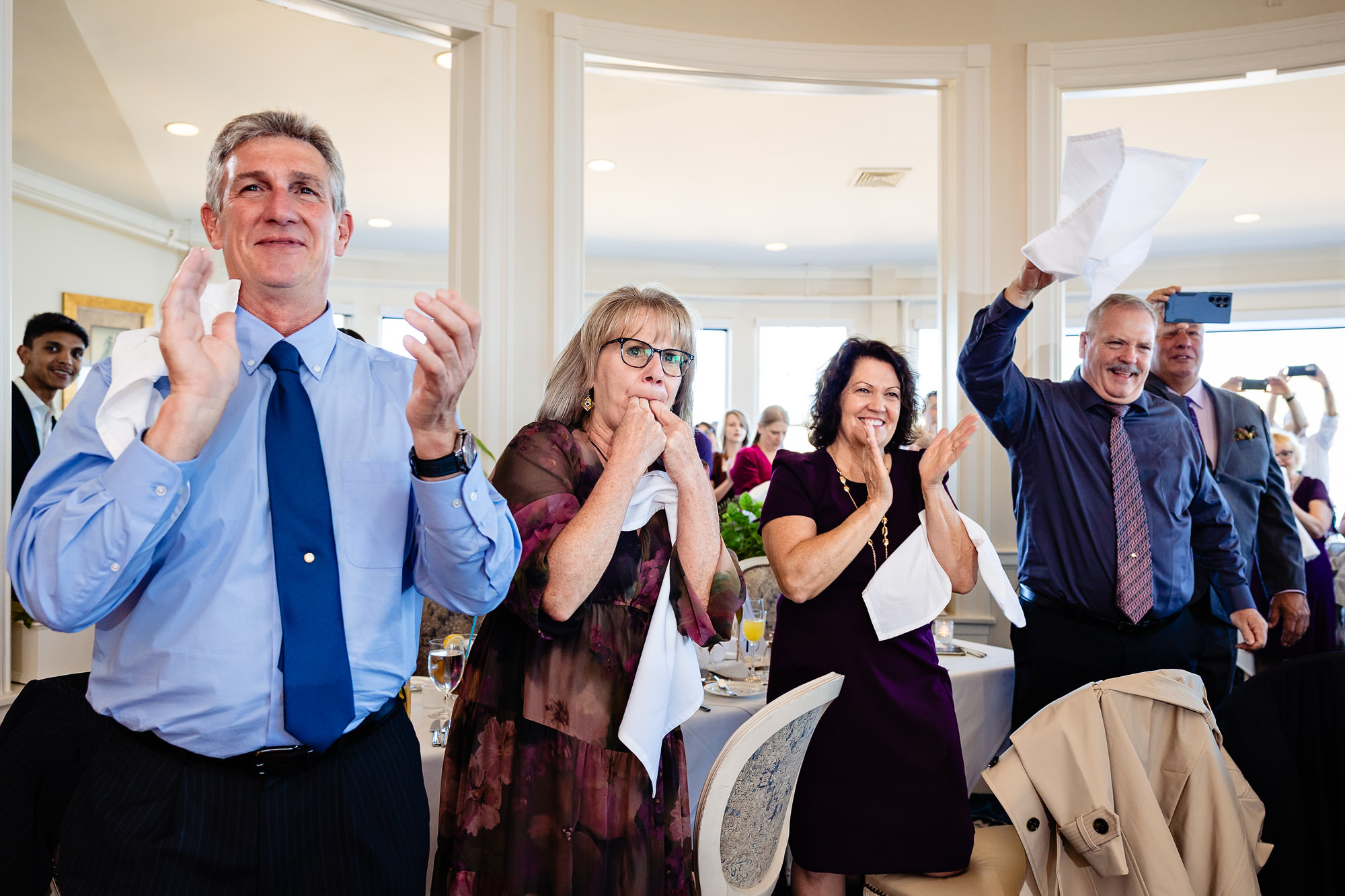 Guests filtered inside Bar Harbor Inn’s Reading Room for cocktail hour, and once Amanda was bustled, we joined the festivities. We started with the usual reception events- first dance, parent dances, and tearjerker toasts, and I felt so much joy capturing their day. Since Amanda and Matt’s ceremony was at 11:30, I wondered- would their guests dance? I wasn’t sure- you never know how active a dance floor will be for an afternoon wedding reception. But I should have known, what with Danny DeBruin’s DJing skills, that the dance floor would be off the charts with energy, and I had plenty of awesome dance moves to capture.